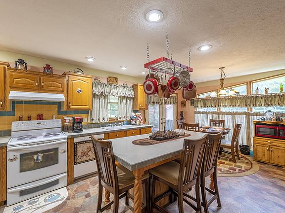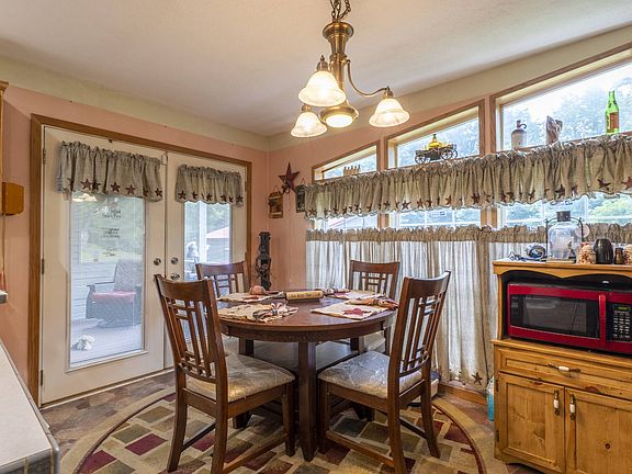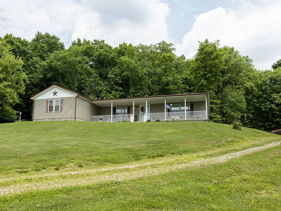 I love this home and setting!. It has a very pretty open floor plan. This home is a 3 BR 2 bath Manufactured home with large living, dining and recreational rooms. It is well maintained with nice trim and doors complete with propane fireplace which is just what you are looking to purchase. Located on 8.896 ac m/l with privacy fence real seclusion is yours. You won't believe how wonderful the 8' x 46' concrete front porch is for the four seasons of the year. An amazing 40' x 56' garage with wood burner, water, electric and 220 service will be perfect for your extra vehicle and hobbies.