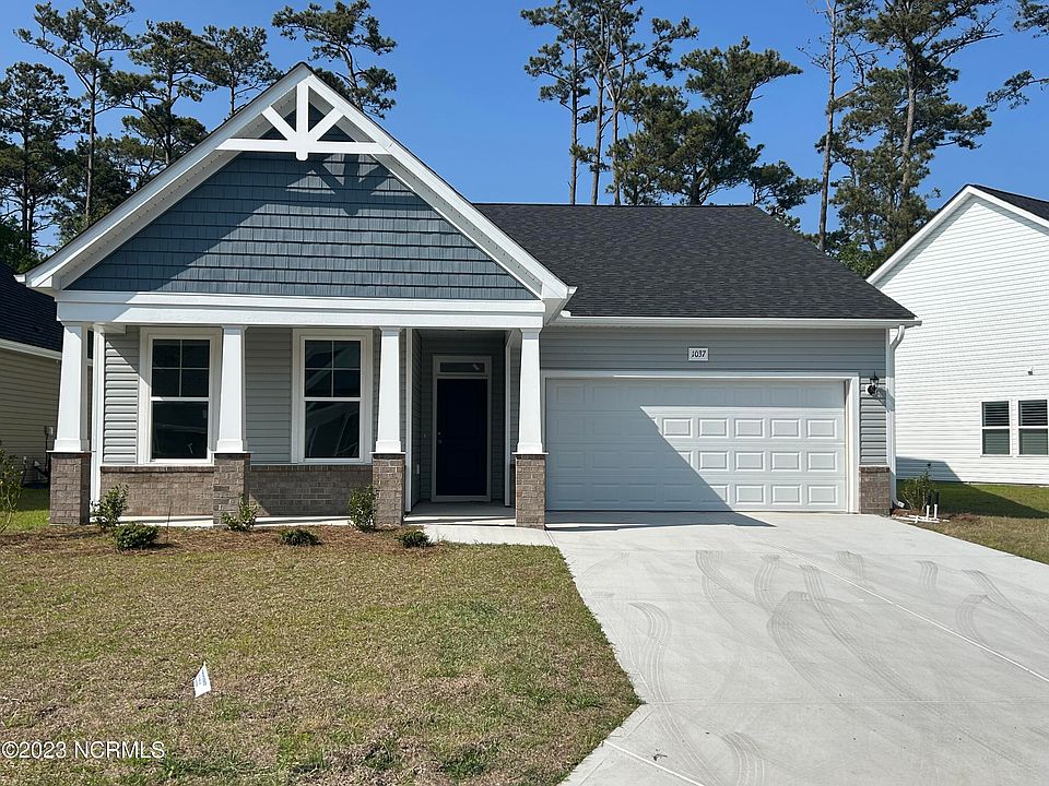 This beautiful home is called the Belair. Fabulous one story home with 3 BR, and 2 full baths. You feel the tall ceilings from the moment you walk into the home. Wide foyer opens to a very large family room with fireplace and amazing open kitchen. The kitchen features granite countertops and an extremely large island. There is also a dining area off the kitchen which could be formal or casual dining. From here walk out to the covered porch and enjoy the natural area this home backs to - nice and private! The Owner's suite has double sinks, a large walk-in shower, and amazing closet - perfect for those with a shoe fettish! This home backs to trees for added privacy and allows you to enjoy the sweet sounds of the good life! Come enjoy golf cart riding to down town and all that Southport offers!