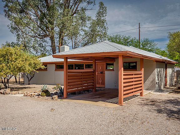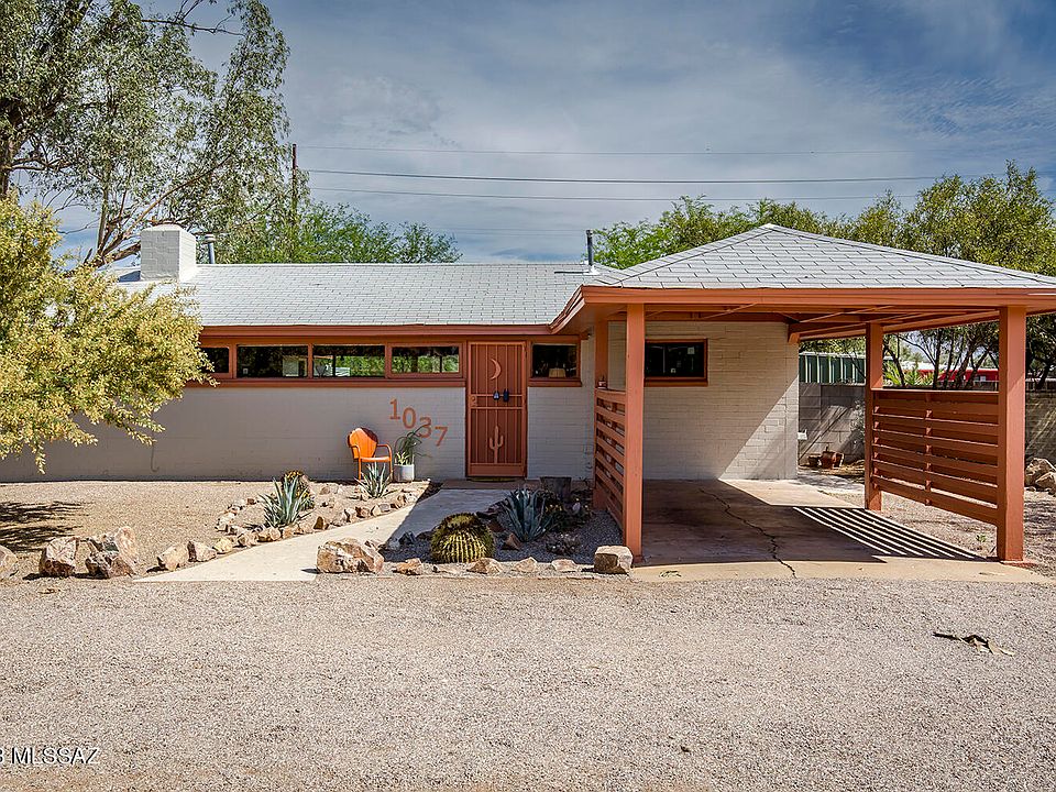 LOCATION, LOCATION, LOCATION! CLASSIC MID-CENTURY MODERN GEM IN MIDTOWN! Close to U of A + The New Park Modern. Authentic/Charming 1940's Bungalow! Freshly Painted w/many Original Historic Details. Polished Concrete Floors, Completely Remodeled + Modernized Kitchen w/Gas Range/Hood, Butcher Block Counters + Designer Cabinets, + Newer Appliances (All Stay). Remodeled Bath with Beautiful Marble Tile, Original Tub, and Pedestal Sink. Gorgeous Remodeled Gas Fireplace in Great Room. Lots of Designer Aspects Thru Out- including Picture Windows, Barn Doors, + Huge North Facing Backyard with Mountain Views! The Lot Offers Plenty of Space to add a Guest House/Casita, or even a Pool. Great Access to Cat Tran & Mountain Bike Path. Enjoy the Low Maintenance Desert Landscaping + Outdoor Storage Shed. Bring your Boats and RV's! There is also a Separate Side Yard with a Gate and an RV Electrical Hookup.