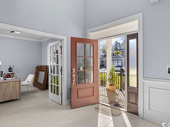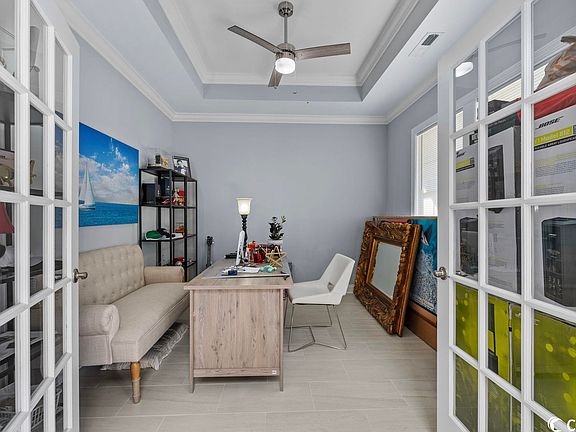 NEW Dramatic new price improvement. Don’t miss this rare opportunity to own this better than new, custom built large updated 4/5-bedroom, 4.5 bath home with an oversized side entry 2 car garage in the highly sought-after ICW luxury community of Waterway Palms Plantation. The stately front entrance, with expansive front porch welcomes you into this bright sunny breathtaking home. The Great Room and the main living area features high-end porcelain tile, electric fireplace with matching built-ins. The formal dining room has a dramatic tray ceiling and large windows, that floods the home with natural light. The gourmet chef’s kitchen includes luxury Samsung/LG Wi-Fi enabled stainless steel appliances including Family Hub® French Door Refrigerator, Built-in oven/microwave combination, farmhouse sink, separate prep sink, pot filler, smooth surface electric cooktop, custom cabinetry range hood, high-end staggered custom cabinets, with pull out trays, soft close dovetail drawers and doors, luxury quartz countertops, custom tile backsplash, under-cabinet lighting, walk-in pantry, and even an island bar. The large screened-in porch offers views of the lake, the pergola barbecue patio area and fenced-in yard. The home has the master bedroom located on the first level that offers a private entrance to the large screened-in porch. It’s features include double tray ceiling, huge walk-in-closet, shower, freestanding soaking tub, custom cabinets, granite countertops, His/her sinks, vanity with transom window, and porcelain tile floors. The laundry room has been craft-fully designed with custom cabinetry, laudry sink and even granite counters. The oversized side entry Wi-Fi enabled 2 car garage has additional outlets/circuit breakers, separate garage sink and plenty of room for your vehicles/toys. There is also an office/5th Bedroom on the main level with a French door entrance. The owners are currently using this space as an office, but can be easily converted into a 5th bedroom, if need be. The second floor has three bedrooms and 3 full bathrooms, a sizable loft/media/rec room, that could even be converted into two additional bedrooms if more bedrooms are warranted. Waterway Palms Plantation is a private gated luxury Intracoastal Waterway Community located off of River Oaks Drive in the Carolina Forest area of Myrtle Beach. The community features custom built Low Country Craftsman and Charleston style luxury homes. Association amenities included are ADA accessible, multi-million-dollar clubhouse, billiards room, media room, fully equipped fitness room, party rooms, a catering kitchen, social areas, verandas, viewing covered gazebos, multiple outdoor pools, tennis/pickleball courts, basketball court, playground area, day dock, private boat ramp and owners private boat storage. Waterway Palms Plantation offers convenient easy access to International Drive, shopping, the beaches and all that Myrtle Beach has to offer, all within the award-winning Carolina Forest school area. Don’t miss out on this rare find, contact the listing agent or your buyer’s agent Realtor today to schedule a private showing. Have your Buyers Agent ask about lease back opportunity. All measurements and square footage are approximate and not guaranteed. Buyer is responsible for verification.