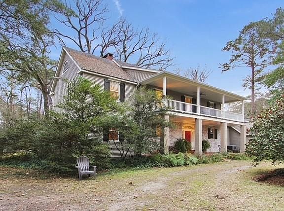 BUILT IN THE TRADITION OF GREAT SOUTHERN MANSIONS, this special/beloved home on 4 acres sits atop most private, picturesque hillside on one of the best, most convenient corner lots in Pineville. Two stories w/4 BR/3 BA inside & 1 BR/1BA apartment above the parking area are flanked by long comfortable porches back&front. Enclosed sunporches highlight top/bottom flrs. Since constructed in 1937, only 3 fortunate families have savored the unique yesteryear appeal of its substantial 3700 sq. ft., variety of shade trees & plantings which surprise every spring & winding paths/ pasture land where imagination is only limitation for a country for your soul lifestyle. While some may feel compelled to update, the welcoming ambiance here is an enveloping step back in time when life was simpler, slower & sweeter. Wrought-iron fenced concrete pool w/ 12 depth. Orig. hdwd flrs. 3-car cov. parking. Attch. workshop/storage . 1 BR/BA down/3 BR/2BA up. MBR w/fp&adj. reading room/office.
