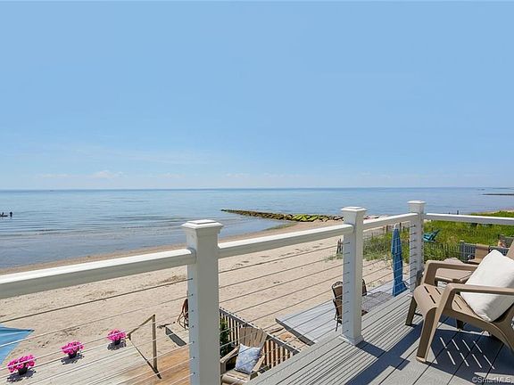 Fantastic renovated direct beachfront home with private guest quarters. Panoramic water views everywhere! Step outside to your own sandy beach. Enjoy beach walks, BBQs, waterfront sunsets & sunrises. Recently renovated open floor plan living. Kitchen flows to dining area, living room with fireplace and glass doors to beach front deck. Spacious family room with built-ins and fireplace. Master bedroom with private waterfront deck and 2 bathrooms. Guest quarters is under construction and nearly completed. Features living room, 2 bedrooms, full bath and rooftop deck with amazing 360 degree LI Sound views. 4 car tandem garage ready for lifts. Perfect for cars & boats. Exterior garage shiplap and garage door to be completed in October. Welcome to beach living! Minutes to vibrant town center, metro north train, beach, marina & playground. Waterfront community 50 miles from NYC offering coastal charm, historic preservation, restaurants, shops & theater.