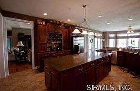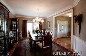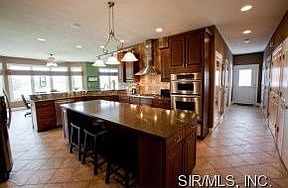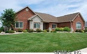 O'Fallon Schools! Exceptional Brick 5 Bedroom 5 Bath with split bedroom concept. Upgrades include: Back saver vanities, casement windows, crown molding, wood doors & trim, wainscoating beveled glass entry door, wide plank hardwood, ceramic tile, silestone counters, staggered cherry cabinets, hearth room off kitchen adjacent to magnificent covered back porch with gorgeous view of Far Oaks golf course 7th green! Separate wing for guest bedrooms, office adjacent to master, lower level wet bar, state of the art media area. Property is located in St. Clair County, close to I-64, Scott AFB, downtown St. Louis, shopping & parks.