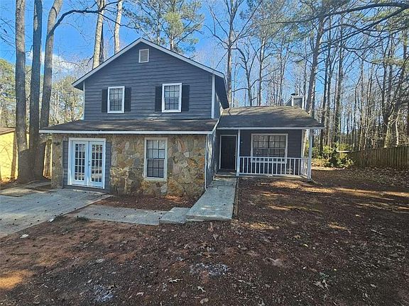 Welcome to this stunning two-level single-family residence, with 4 bedrooms, 2 full baths, and 1,401 sqft of living space, situated in the desirable Forest East Sub community. Nestled in a tranquil wooded area, the home combines rustic appeal with modern elegance. Its exterior features an appealing mix of stone and wood siding, with a striking dark blue upper level and a sophisticated stone facade on the lower level. A concrete driveway leads to the inviting front porch, accented with classic white railings. French doors on the lower level and two upper-level windows with elegant black shutters bring natural light into the home, creating a seamless connection between indoor and outdoor living. Upon entering, you are greeted by a spacious living room adorned with light gray walls and soft beige carpeting. The high ceiling, enhanced by a ceiling fan with a light fixture, creates an open and airy ambiance. A stone fireplace with a white mantel serves as the room's centerpiece, offering a retreat for relaxing evenings. Natural light flows through a window on the far wall, brightening the entire space. The kitchen is a delightful combination of style and practicality, featuring a tiled floor, light gray cabinets, and sleek black appliances, including a refrigerator and gas stove with an oven. A double sink and dishwasher ensure meal preparation and cleanup are effortless. The light-colored walls brighten the space, while a ceiling light fixture adds a touch of sophistication. Conveniently, a door leads to another room, enhancing the kitchen's functionality and accessibility. Adjacent to the kitchen, the dining area offers the perfect setting for both casual meals and entertaining guests. The tiled floor complements the kitchen's design, while a stylish hanging light fixture with four bulbs creates a warm and inviting ambiance. A short carpeted staircase leads to the living room, offering a cohesive flow between spaces. The dining area's light beige walls provide a neutral backdrop that complements any decor style, and a black metal railing elegantly separates it from the living room while maintaining an open feel. The primary bedroom is a serene retreat, featuring beige walls and a light brown carpet that exude comfort and warmth. Natural light streams through a window on the left side, creating a bright and inviting atmosphere. Adding to its appeal, the primary bedroom includes a private en-suite bathroom, offering convenience and a sense of luxury. This home is a peaceful sanctuary that perfectly balances tranquility, natural beauty, and modern comforts. Don't miss the opportunity to own this slice of paradise in the serene, wooded surroundings of Forest East Sub.