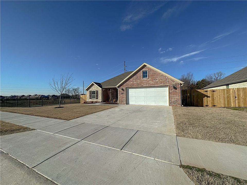 Welcome home to this well maintained, like new, home tucked away in this quiet neighborhood that has convenient access to HWY 412. Located in Hickory Meadows Subdivision includes a resort style community pool, pavilion/park & playground. Fall in love with this floor plan from the minute you step thru the front door. Entry way reveals 10' ceilings and an open concept living room, kitchen & dining room. Kitchen includes island w/ eat-in bar seating, granite countertops, custom cabinetry, electric range (plumed for gas stove) & stainless appliances. Kitchen cabinets are soft-close w/fully extended drawers. Laundry room located off the kitchen. Garage-extra wide/deep w/8.4’ ceiling height. Split floor plan w/ primary bedroom-includes an ensuite bathroom featuring stand-up shower, whirlpool tub, dual vanities & large walk-in closet. All brick exterior, front and back covered patios, gutters, fully sodded lawn, and professional landscaping. Enjoy peace & quiet with quick access to everything in this growing community!
