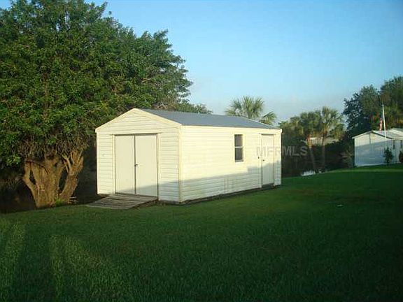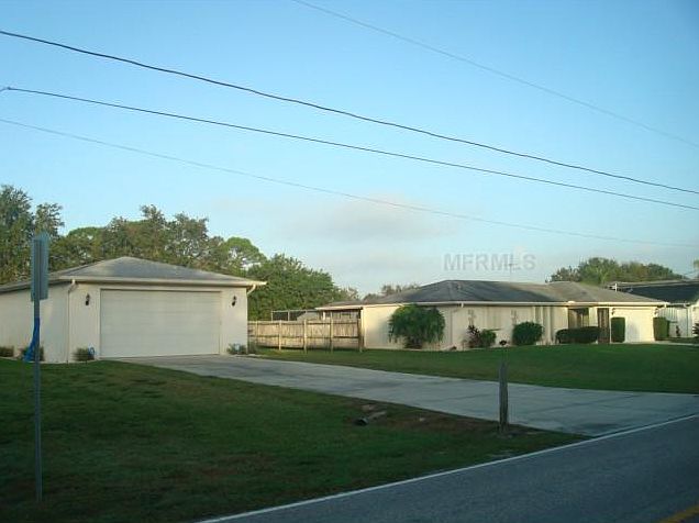 Updated 3/2/2 with an additional 25X35 gar., a 12X20 workshop, and a dock on a wide canal on 2 lots. Large foyer w/coat clo. Cathedral ceilings in LR, DR, family room; vaulted ceiling in kit. Delightful kitchen with pantry clo., SS appliances, granite tops, decorator cabinets, pass thru to lanai, undermount sink with built in soap dispenser & water filter. DR & MBR have French doors; breakfast area single door, all lead to lanai, all with between-the-glass blinds. MBR has large walk-in clo., dual sink vanity, and modern walk-in shower. BR2 has walk-in clo. 7X6 laundry room with large sink & lots of shelves. Guest bath opens to lanai to serve as pool bath, also. 22X10 covered area on lanai with fans and storm shutters. Waterfall with the kidney shaped, solar heated pool & hot water heater. Alarm system protects both the house and the additional gar. Additional gar. has 9' high x 18' main door and a side door. Workshop has electric power, 3 windows, 2 doors, and a mower ramp. All furniture and furnishings convey except the following: Bedspreads in MBR & BR 2, MBR mattress & box springs, Bamboo tree in family room, Lamps on living room tables, Dishes in DR china cabinet, d?cor items. 18 additional pictures and 6 panoramic views available - click on the VIRTUAL TOUR. Brokered And Advertised By: RE/MAX PALM REALTY Listing Agent: DICK ERDMANN