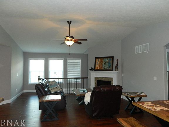 Wonderful open floor plan Ranch home. Beautiful wood floors. Split bedroom plan 2bedrooms and full bath. Master suite with 2 sink vanity, shower, separate stool and walk in closet. Kitchen open to vaulted ceiling family room with gas fireplace. Kitchen w/ center island eating bar, many cabinets, pantry and granite countertops. First floor laundry. Covered deck and fully sodded yard.