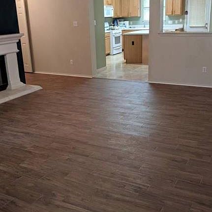Three bedroom 2 bath 19 year old house in excellent condition with lots of upgrades. Clean as a whistle. Working fireplace in living. Central air, heat. Teched out. Travertine tile in kitchen, ceramic tile in living, office, and hall, carpet in bedrooms. Double sinks in master, tub and separate shower, large walk-in closet. Mature trees keep the front yard shaded and the covered back porch is perfect for entertaining! Large kitchen includes island, built-in microwave, and a ton of cabinet & counter space.