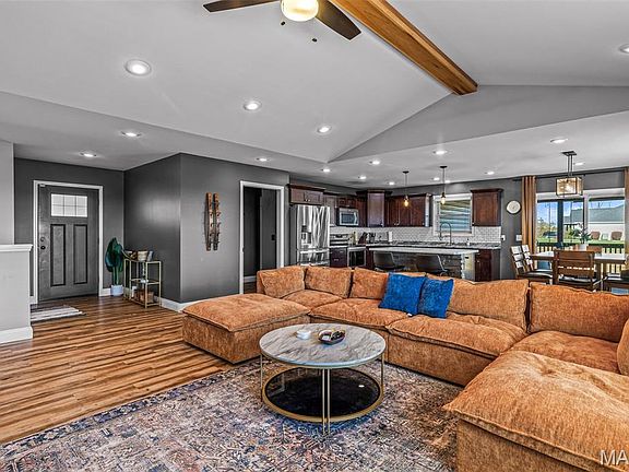 This stunning ranch offers the perfect blend of comfort and style on 3.5 picturesque acres. Step inside to an inviting open floor plan where the living room centers around a cozy fireplace and flows seamlessly into the dining and kitchen areas. The kitchen is a chef’s dream—complete with a breakfast bar, and direct access to a covered porch perfect for morning coffee or evening relaxation.