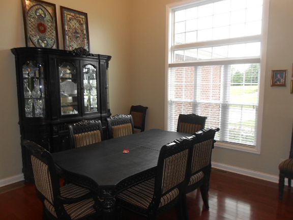 If you are looking for a beautiful, well built home with incredible views-look no further. This all brick ranch walk out has you enter through a beautiful entry door flanked with transom and side windows. The open entry, dining and great rooms have beautiful hardwood floors. The great room has tall ceilings with a trey, the dining room is vaulted and bright with lots of windows. The open eat in kitchen has 18'' ceramic tiled floor. Door leading to covered deck maximizing incredible views. Master suite has double trey ceiling with fan. Master bath has double vanity, jetted tub and separate shower. Two more bedrooms on first floor have ceiling fans. The laundry and full bath finish out the first floor. The basement has a family room with french doors leading to patio. 2 other...