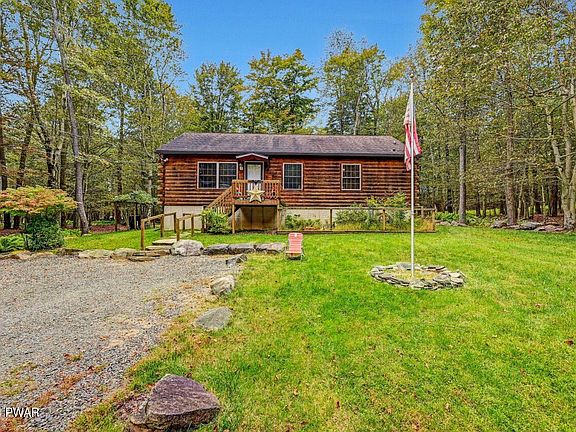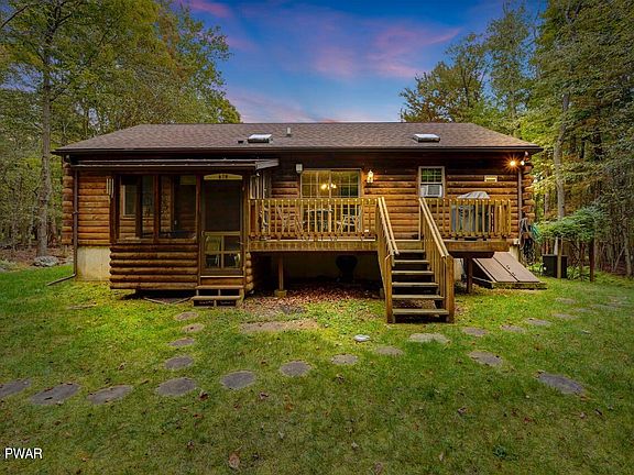 Log sided home in Pocono Springs Estates gated community. This home has 3 bedrooms, 2 full bathrooms, all on 1 floor. There is a huge unfinished basement ready for expanding or storage. A deck for enjoying the outdoors and also a screened porch. This home also includes the lot next door confirming no one will be building next to you. Lots of space outside. You will have peace of mind should you have any power outages with the whole house generator included. The community has their own private lake, swimming pool and clubhouse. This community is golf cart and ATV friendly.