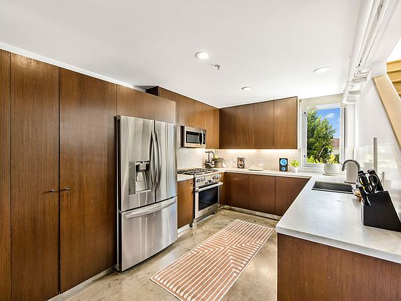 ALSO AVAILABLE FOR SALE, PLEASE INQUIRE WITHIN! Nestled in the architecturally prominent Lofts at Laurel Court resides this one-of-a-kind, newly renovated three-story contemporary townhome with expansive views, high-end finishes, and custom curated design. The Lofts at Laurel Court is a secure, private community of twenty loft-style town homes situated in a tranquil tree-lined, open-air courtyard setting right in the heart of West Hollywood. The ideal location is just steps away from popular nightlife and restaurant destinations, such as Delilah, Laurel Hardware, Ysabel, Employees Only, and walking distance to Wholefoods, Gelsons, and many trendy coffee shops and cafes. Upon entering unit 16, you are greeted by dramatic 2-story 17' high ceilings, massive picture windows, concrete floors, custom white oak millwork, and a spacious living room bathed in natural light. The open-concept, designer kitchen features Carrara marble countertops, custom cabinetry, and top of the line appliances, including a Miele professional 6-burner range. The lower-level bedroom has been converted to a cozy dining room with built-in banquette seating and opens to a spacious balcony. Unit 16's original 1,220 square foot floor plan underwent a ~293 square feet expansion creating an incredible master suite on the second level, featuring a loft style bedroom, a large walk-in closet, a den/seating area, and an on-suite custom built-in library/study room. The third level has also been expanded and features a built-in desk/office nook, as well as a built-in murphy bed imported from Europe for guests. This level has incredible views of Downtown to the east and Century City to the west as well as access to the private rooftop patio. Both bathrooms feature designer Carrara marble tile and countertops, top of the line fixtures, and custom-built walnut vanities. Enjoy breathtaking sunsets from the completely private 550+ square foot wrap-around rooftop deck, which features panoramic views from the Hollywood sign to Downtown to Century City to Hollywood Hills and beyond. Additional features include imported Oak flooring, Lutron smart home lighting, Nest smart thermostat, and LED lighting throughout. Control your lighting and temperature with Siri! This is a rare opportunity to lease one of the most sought-after units in one of the most coveted buildings in West Hollywood. This unit is also available partially or fully furnished ($50k+ furniture from Restoration hardware, etc). Renter is responsible for gas and electric. 1 Parking spot is included. Small pets are permitted. 1 year+ term preferred, but shorter term may be negotiated. Please inquire for short term rate.