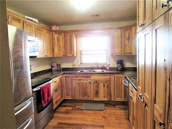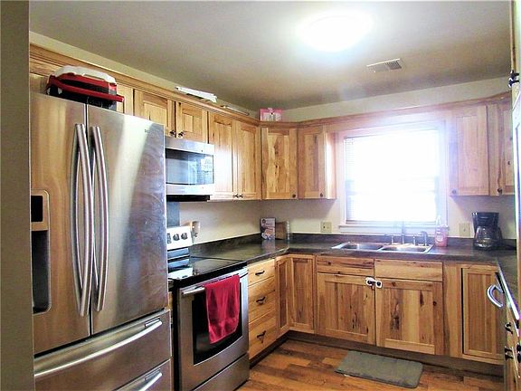 THE HOUSE AND GARAGE RECEIVED BRAND NEW ROOFS ON 10/29/19. Nice 3 bedroom, 1 bath ranch-style home on a corner lot. Spacious living room and a family room. The kitchen has been totally remodeled with hickory cabinets and newer stainless steel appliances. Newer carpet and flooring and trendy wall color. Furnace and AC units are also newer. A cozy breezeway attaches the home to a large 2 car garage and enormous carport. The garage also has an addition for added storage. Great home and just waiting for you!