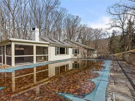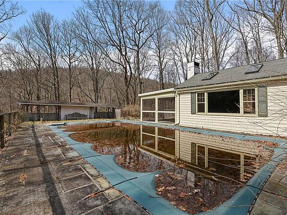 Secluded Bedford wooded retreat feels totally private. 6.4 acres, 4 bedroom, 3 full bath. Pool and screened in porch, charming wood paneled living room and dinning room each with a wood burning fireplace. Wood floors throughout.Take advantage of a change in family situation. Some of the leg work for the renovation of this home has already been done. Taxes have been grieved and are reduced starting April 2020. Building permits for house and new pool location are ready to pick up. Roof replaced on porch, more acreage than previous listing stated. New survey and lot calculations done. Wonderful opportunity to turn this into your dream home, or a builders dream project.