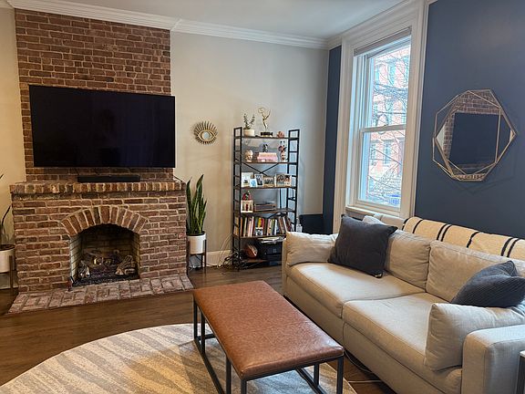 Stunning 2-Bedroom Parlor Level Condo in Uptown Hoboken Nestled in the desirable Uptown Hoboken area, this charming condo seamlessly blends modern updates with classic character. With high ceilings, original molding, and exposed brick, this home exudes timeless elegance. The open floor plan is anchored by a cozy, working fireplace, perfect for relaxing or entertaining. Step outside to your private deck, offering direct access to a shared backyard, a rare find in this vibrant neighborhood. The spacious primary bedroom boasts his-and-her closets, while the unit provides a total of 4 closets and additional storage and shared (free) laundry in the basement. The recently renovated kitchen and bathroom add contemporary comfort to this historic space. Original hardwood floors flow throughout, and modern app-controlled AC and heating ensure year-round comfort. Located just steps from shops, bars, restaurants and 2 grocery stores, this home is a commuter's dream with two bus stops within a 3-minute walk and a 10-minute walk to the uptown ferry. Don't miss this rare opportunity to own a beautifully preserved and thoughtfully updated home in one of Hoboken's most vibrant and convenient locations!