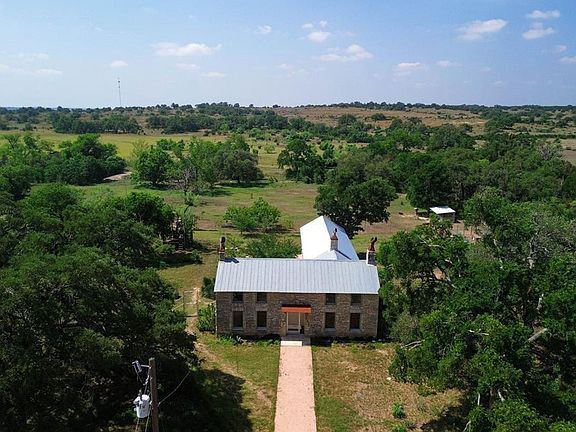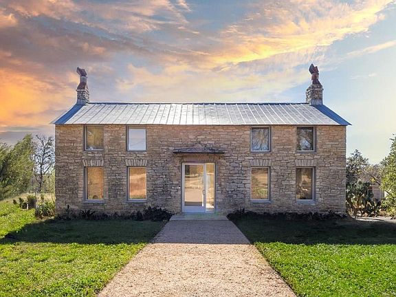 DAn exceptional opportunity awaits on nearly 20 unrestricted acres backing to a large ranch, providing unmatched privacy. This scenic property features a mix of heritage oaks, pecan trees, and open pasture—ideal for livestock or simply enjoying the serene setting. The remodeled home is set well back from the road in a natural, private landscape. The land is fully fenced and cross-fenced, offering multiple building sites and sweeping views from the elevated back portion. Additional features include a greenhouse, organic garden beds, wild-growing herbs, and a fruit grove with peach, plum, and persimmon trees. A custom chicken coop, pole barn, and even a private 2-hole golf course add character and function. An ag exemption keeps property taxes low. Originally built in 1867 and thoughtfully redesigned by V Mode De Vie Design, the 3,019 sq ft home blends historic charm with a clean, modern farmhouse style. Once owned by the last Vice President of the Republic of Texas, the home offers 3 bedrooms, 2.5 baths, oak floors, and a beautifully appointed kitchen with top-tier appliances, hidden refrigerator and dishwasher, and central air with commercial-grade windows for year-round comfort. Updated major systems and a cellar complete the home's appeal. Located just 1 mile off Highway 281 and 15 minutes from Marble Falls, Horseshoe Bay, Lake LBJ, Lake Travis, and Johnson City—this property offers easy access to the Hill Country's best while remaining a peaceful and private retreat.