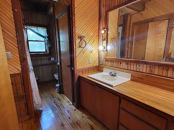 Older log home with 3 Bedrooms and 2 baths on 2 to 3 acres mol. There is a large well house and circle driveway. Walkin closets, wood counter tops and sunroom. There is more land available.