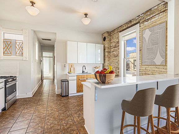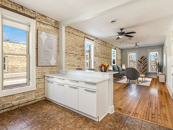 Boutique Walkers Point architectural stunner featuring two bedroom loft style residences with modern finishes, historic details throughout. There is a reason we call this 1887 property a one of a kind diamond in the rough. Massive open plan, partial exposed brick, high ceilings, white quartz counters, custom hardwood kitchen cabinetry, large windows, restored hardwood floors, central ac, custom closets and storage, washer dryer, massive master bedroom and elegant bathroom with period tile, this unit offers it all, plus parking on site and patio in back. 1887 Iconic Rehab Cream City Brick Hardwood Floors Modern Kitchen Large Master Bedroom Spacious Laundry Parking Garage (as available) Owner pays for water