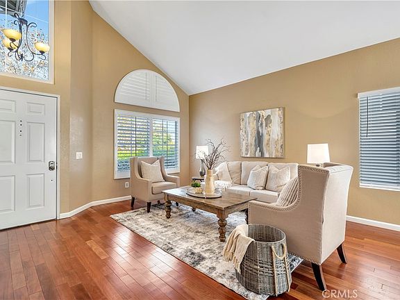 Dreaming of a home where you can simply move in and unwind? After a short drive through tree-lined streets and scenic grounds of the Santa Ana Mountains, home awaits you. This 3-bedroom abode offers affordable living next to Yorba Linda in the picturesque community of Sierra Del Oro in the city of Corona. Natural light filters through the oversized stacked windows and the vaulted ceilings in the living and dining areas to immerse the interior in a welcome ambiance. The home is accented with hardwood floors throughout the lower level, plantation shutters, and a popular two-tone color scheme. Granite countertops, stainless steel appliances, and an open-style breakfast counter equip the kitchen. Ideal for gatherings because of its openness to the kitchen, the warming family room highlights a wood-burning fireplace and an upgraded sliding door to flow to the backyard easily. The vaulted ceilings enhance the main suite's well-sized proportions and highlight a lounge area, a walk-in closet, and a private bathroom with a soaking tub. The four-season shade structure in the backyard will encourage alfresco activities all year round or to unwind and bask in the evening breeze after those long working hours. The backyard setting provides abundant space to roam for your family and four-legged friends and even room to grow your own vegetables. Bonus perks include an upgraded A/C condenser, most dual-pane windows, upgraded sliding doors, and vinyl fences, and there's no HOA and no Mello Roos. The property is only minutes away from the 91 freeway, the 91 express lanes, the 241 toll road, the 71 expressway, and the Metrolink station. Orange county's main attractions and shopping are only one exit away. Nearby nature trails, including the famed Skyline Trails and Prado View regional park, are popular spots for weekend hiking, biking, and getting fresh air with the family.