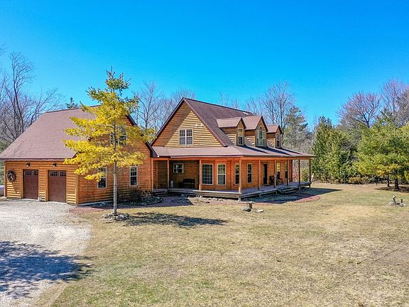 This lovely country home is tucked into 5.2 mostly wooded acres at the end of a private lane and abutting protected Nature Conservancy land. The airy home features a wrap around covered deck and an inviting screened porch. Indoors the home has a great room concept living area, custom eat-in kitchen with solid surface counters, quality appliances, and upgraded hickory cabinetry. The first floor also includes a primary suite, den/dining room, foyer, powder room and laundry room. Two good sized guest bedrooms share a full bath upstairs. The home also features hardwood flooring in most rooms, an unfinished full basement, semi attached garage with a finished room above, and garden shed. Maintenance agreement in place for the shared roadway.