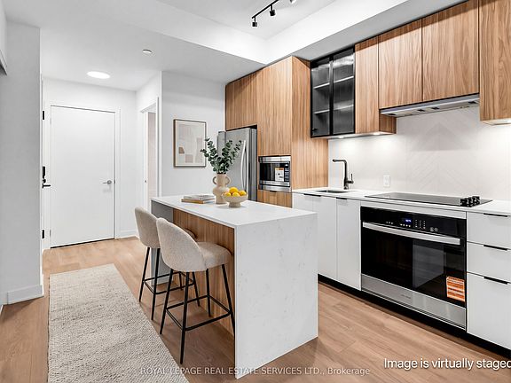 Welcome to this bright and beautifully finished 2-bedroom, 2-bathroom suite located at 1037 The Queensway, offering a smart layout, modern design & comfortable urban living. The interior features wide-plank flooring throughout, clean white walls, and large windows that allow natural light to flow through the space. The open-concept kitchen is sleek & functional, complete with integrated appliances, contemporary cabinetry, and a streamlined design that connects seamlessly to the living and dining area, making it ideal for everyday living & entertaining. The living space opens to a private balcony, perfect for enjoying morning coffee or evening downtime with city views. The split-bedroom layout provides excellent privacy, with the primary bedroom offering generous space and a modern ensuite bathroom finished with a glass shower and elegant tilework. The second bedroom is well-sized and versatile, ideal for a guest room, home office, or nursery, with easy access to the main bathroom. Both bathrooms feature clean, modern finishes and thoughtful storage. The building at 1037 The Queensway is a contemporary, well-managed residence offering modern construction, secure entry, and a polished urban feel. Designed with comfort and efficiency in mind, it appeals to professionals, couples & small families seeking quality finishes and a low-maintenance lifestyle. Located in the highly desirable Queensway corridor, this home is surrounded by excellent amenities, including shops, cafes, restaurants, grocery stores, and big-box retailers, all just minutes away. The area offers easy access to TTC transit, major highways including the Gardiner Expressway and Highway 427, and is a short drive to downtown Toronto, Sherway Gardens, and waterfront trails. Nearby parks, fitness options, and everyday conveniences make this a vibrant and practical place to call home. A turnkey lease opportunity combining modern interior finishes, a functional layout, and a well-connected west-end location. IDX information is provided exclusively for consumers' personal, non-commercial use, that it may not be used for any purpose other than to identify prospective properties consumers may be interested in purchasing, and that data is deemed reliable but is not guaranteed accurate by the MLS .
