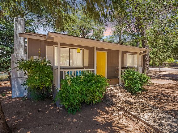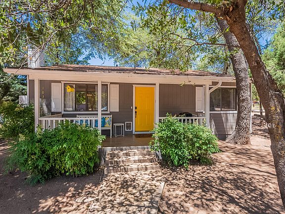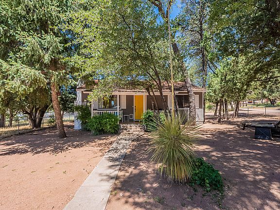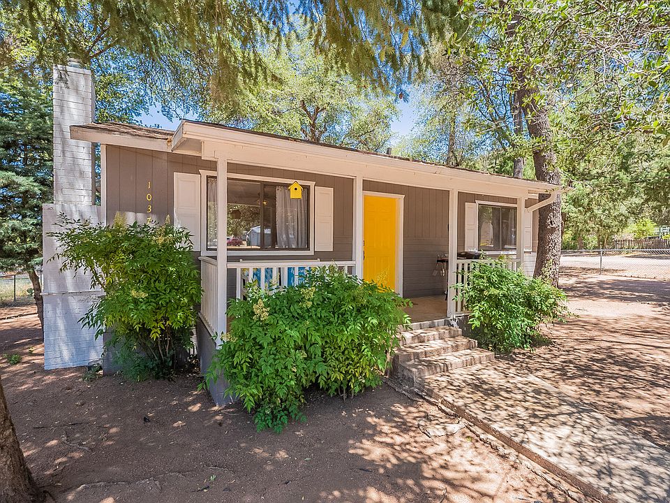 Welcome to your cottage in the woods! Nestled amidst the captivating beauty of Payson, this charming abode offers an enchanting retreat that seamlessly blends rustic charm with modern elegance. Remodeled from top to bottom in 2021, this stunning property is an absolute must-see for those seeking a turnkey escape to nature's paradise. Located on one of the most sought after mountain View lots, this gem sits in a private cul de sac where the back of the neighborhood meets the forest. The inviting curb appeal greets you from afar with a covered porch that sets the stage for a peaceful morning or evening spent enjoying the serene surroundings. The property boasts ample space outside, providing plenty of room for outdoor activities and entertainment. The tasteful interior upgrades provide a seamless fusion of contemporary design and classic mountain living. You're welcomed by an open and airy floor plan that maximizes natural light, with neutral paint and flooring throughout. The living room is overseen by an updated pellet stove accent wall, with a designated dining space and fresh culinary haven featuring crisp white cabinetry, granite countertops, gold fixtures, oversized sink, matching stainless steel appliances and bright backsplash. Two thoughtfully designed bedrooms offer a tranquil sanctuary for relaxation paired with bathrooms that feature exquisite furnishings. Ample parking space and an exterior storage building that can be used as a workshop, office or additional hangout. Located conveniently near the town's finest dining, shopping with easy access to all Payson has to offer. Whether you're looking for a weekend escape or year round living, this treasure is perfect for comfort and adventure. The opportunity to own your own slice of paradise awaits! ***All furniture available on separate bill of sale with strong enough offer***