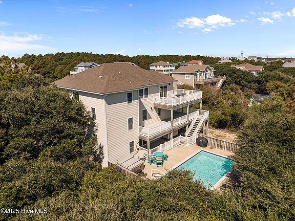 Fabulous price for this 6 bedroom, 5.5 home with OCEAN VIEWS just 2 lots to the beach. 500 ft to direct beach access at Sturgeon St. PRIVATE 16 X 28 ft POOL, SPA, ELEVATOR. MEDIA ROOM with a large screen. REC ROOM with POOL TABLE, KITCHENETTE. SCREENED PORCH.Lots of sun decks and covered decks.VINYL RAILINGS. The top floor features a spacious, open-concept floor plan. Beautiful kitchen with large bar, white cabinetry, new gas cooktop, 2 dishwashers, and wall oven. Great room has gas fireplace. Lots of dining seating with 2 tables, bar. Mid level sitting area. Lots of parking, large lot! Shows beautifully. Good rental income. A must see for this location and price in gorgeous WHALEHEAD CLUB.