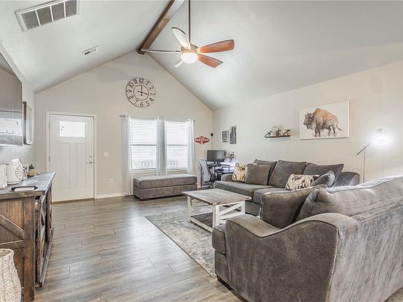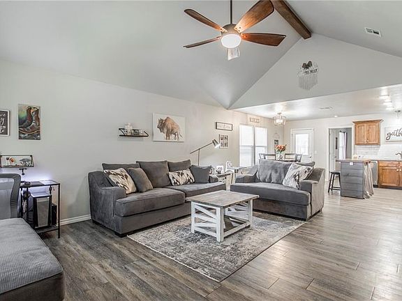 Great ONE owner, well-maintained home located in the heart of MWC. It's just minutes away from downtown OKC, Tinker AFB & Boeing! If you are looking for a spacious living/dining area, this is it! The open floor plan includes vaulted ceilings w lots of windows w natural light shining through. Built in 2018, it has 3/beds, 2/baths & a 2 car garage PLUS; it's "move-in ready". What more could you want? The primary bedroom has a large walk-in closet w plenty of room for all of your items. The two other bedrooms are spacious w step-in closets. Granite countertops & tile flooring throughout. The kitchen is all electric w a meal preparation island w underneath storage. Enjoy your Oklahoma evenings on your covered patio and/or covered front porch. This home is really cute, comfy & it won't last long!