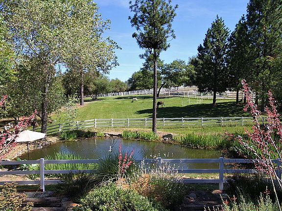Fabulous ranchette on 5 secluded acres in private community close to Penn Valley and 15 minutes to Grass Valley and Nevada City. Convenient to everything and less than an hour to Lake Tahoe ski resorts. 4 bedrooms, 3 baths plus a den. Granite kitchen counters and tile floor. Slate floor in entry , living room and master bedroom. Living room has vaulted ceilings and a wood burning fireplace. Fabulous master bath with gas fireplace, sunken tub and large stall shower, with huge windows giving you a private view of, the back pastures and tree studded landscape. This horse property has a $70,000 three stall barn with feed and tack area and large 400 sq ft attached hay storage room. Large 80 foot by 120 foot fenced ring with sprinklers. $20,000 of vinyl fencing. Fenced and cross fenced with 5 separate pastures, all irrigated with NID water, pumped from your year round pond right outside the front door. There is also a separate free standing $15,000 tack room and wash rack, separate tool shed and an irrigation pump house with lots of storage. Looking out from front porch you will feel like you are in a park, with lush green pastures, oaks, pines, willows and cottonwood trees. Relax on the cozy shaded dock on the landscaped pond with fountain, stocked fish, and beautiful front area with flowering plants and shrubs. Huge, detached composite deck in the back is perfect for entertaining. All of this, plus the NID ditch trail runs right out the back of your yard, for a good hiking and riding trail.