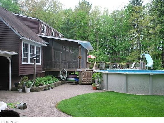 Don't miss this wonderfully maintained 4BR/2BA Cape Cod on 10 beautiful acres in Munson Twp. The large living room features a beautiful fireplace. Eat-in kitchen with attractive wood floor and a great view of the property. The formal dining room has French doors which open to an amazing screened in porch, which leads to the outstanding maintenance free deck with a solar heated above ground pool. 2 BR's on 1st floor one currently being used as an office. 2 large bedrooms and a full bath upstairs. Plenty of storage in the room over the garage which could easily be converted to over 500 sqft of additional living space. The basement is half finished recreation room and half utility room with workshop with steps up to the outside patio. The multi-fuel furnace burns wood, oil or coal, domestic hot water. Newer doors and Anderson windows throughout. The property is beautifully groomed front and back with an outstanding array of perennials and trees. The backyard is an amazing retreat featuring a beautiful fountain and a large garden area enclosed with a white picket fence. New septic system to be installed by seller. 100% Money Back Guarantee.