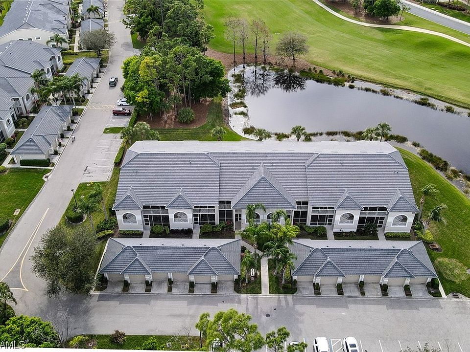 Beautiful 1st floor condo overlooking the 10th fairway & lake of the Royal course is a must see! Located at the end of a quiet street makes this perfect for relaxing and enjoying gorgeous sunsets on your lanai. This 2 bedroom + den Barrington is well cared for and has nice updates! Both bathrooms renovated, new AC from 2023, new washer & dryer 2023, water heater 2021, tile in main living area, new carpet in bedrooms AND... the building has just been painted including lanais with a brand new roof! Association has also replaced the outdoor lights with LED for the sleek modern look. The windows are impact glass. Heritage Palms has something for everyone. There are 36 holes of golf, tennis program, pickleball, tons of social events and more! Conveniently located with easy access to RSW, Top Golf, Shopping, Dining and more!