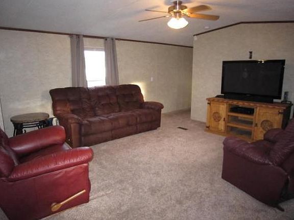 Affordable country living and just a few minutes to town! Just 1.7 Miles South from I-40 on Airport Rd. This 3 bedroom 2 bath single wide is all electric with central H&A, and includes refrigerator, range, dishwasher and built in microwave. Covered decks on front and back. 20 x 20 Quonset style storage building, completely wired including 220. Operates on its own well and septic system so electricity is the only utility. Excellent stand of grass in yard. Great views of countryside.