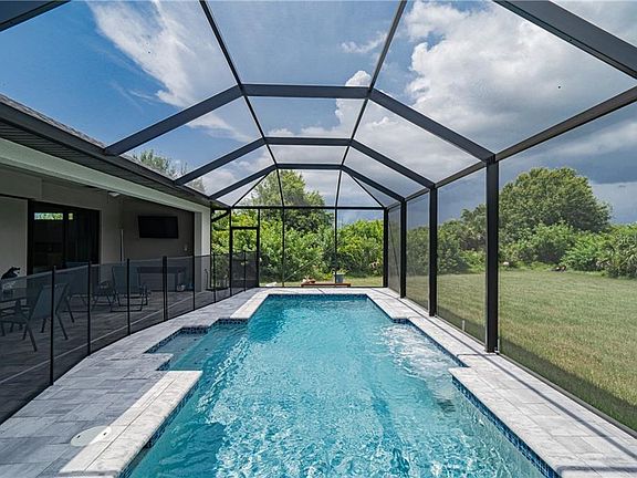 WHY WAIT TO BUILD?! IMMACULATE 3 Bedroom, 2 Bathroom, + OFFICE/DEN with a SALTWATER POOL and a 3 Car Garage Home on an OVER-SIZED lot in the community of South Gulf Cove. CLICK ON THE VIRTUAL TOUR LINK 1 FOR A 3D INTERACTIVE WALK THROUGH AND VIRTUAL LINK 2 FOR THE VIDEO. This STUNNING Custom DM Dean Home features a BRIGHT & AIRY open floor plan, high & double tray ceilings, 5" crown molding, recessed lighting, diagonal set tile flooring, ceiling fans/lighting w/ remotes, and an array of high quality details & features throughout. A set of french doors will lead you into the SPACIOUS living room showcasing an open floor plan and an incredible panoramic view of the back patio through a wall of 90 degree pocket sliding doors. The kitchen boasts of granite counters, a glass back splash, plenty of cabinets for storage, pantry, soft close drawers, pendant lighting, a breakfast bar with center island, and stainless steel LG appliances w/ a hood that are included - WOW! The kitchen overlooks the dining area that offers a fantastic outdoor view through more pocket sliders and features a modern chandelier. The Master Suite has a tray ceiling, offers access to the back patio, and two walk-in closets. The LUXURIOUS master bath features his & her vanities, a separate toilet room, and an amazing ALL-TILED walk-in ROMAN SHOWER w/ a bench & glass window. The additional bedrooms are very spacious with closets, tile flooring, and ceiling fans - one of the bedrooms offers pool access. You will LOVE the huge back SCREENED-IN brick paver patio with TWO seating areas - PERFECT for entertaining your family & friends! HEATED SALTWATER POOL W/ THERAPY JETS & MULTI- COLORED LED LIGHT FEATURES - LOW E IMPACT WINDOWS & SLIDERS - THERMA TRU IMPACT FIBERGLASS DOORS - "NO SEE UM" SCREENS IN PATIO - WIRED GENERATOR HOOK UP - SURGE PROTECTION IN MAIN PANEL OF HOME - GARAGE DOORS ARE ACCESSIBLE VIA WiFi - HOME IS ALSO BUILT-UP PAST FEMA REQUIREMENTS - PLANTATION SHUTTERS - OUTDOOR LIGHTING - GREAT CURB APPEAL - FANTASTIC LOCATION W/ GREAT PRIVACY - & MORE! The adjacent lot can be purchased on a separate contract for 10,000 MLS#C7431096. Take a short car ride to the Gulf Beaches of Boca Grande, Englewood, or Manasota Key to name a few where you will find world class fishing and white sand between your toes. Other area amenities include boating, golfing, fine dining, and the Charlotte Sports Park welcoming the Tampa Bay Rays and the Charlotte Stone Crabs. Fly direct into several nearby international and regional airports offering a wide variety of destinations. Schedule your showing TODAY!