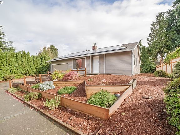 This Beaverton one-story offers a deck, a fireplace, and a two-car garage. Solar panels do not convey.