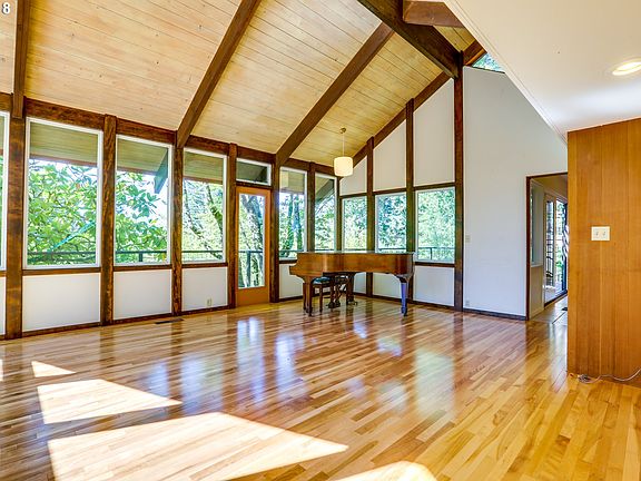 Architect designed NW Regional Style home tucked into a large lot on a private lane in a close-in SW neighborhood. Beautiful blue glazed Japanese tile roof accents the incredible wood and glass construction. Vaulted wood ceilings paired with walls of windows bring the outdoors into the living space. Unique custom floor plan with 2 suites, gourmet kitchen, lower level set up for 2nd living space. Close to downtown,shopping, SW trails. [Home Energy Score = 1. HES Report at https://api.greenbuildingregistry.com/report/pdf/R154175-20180315.pdf]