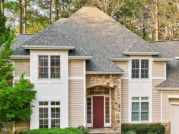 This magnificent home is located along the rolling hills of the Saddle Ridge community in Governors Club. Situated at the end of a cul-de-sac & offering wonderful privacy. Feel like you're living in the middle of a forest. Special features: 1st floor primary bedroom & recently renovated bath. 2-story living room w/ soaring ceilings. Newly installed barn wood walls. Floor to ceiling stone fireplace hearth. Beautiful kitchen w/ brand new stainless steel appliances. Viking gas cooktop. Butcher block island top. Brick arched cooktop alcove w/ Italian marble mosaic design. Upstairs you'll find 3 spacious guest bedrooms & a wonderful bonus room. The walk-out lower-level is perfect for entertaining w/ a spacious family room & flex space that could be used as an extra bedroom, workout room or large wine cellar. Terrific outdoor living spaces, including large & recently remodeled deck, screened in porch & outdoor patio on the lower level, perfect for enjoying your wooded surroundings. Brand new roof. New main level HVAC. Close proximity to UNC, Duke, RTP, RDU Airport, top-notch shopping, sports, entertainment & medical.