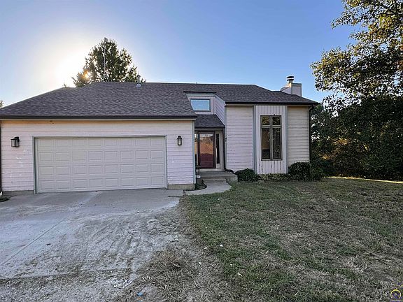 3 BR, 3.5 Bath 1.5 Story home on 5.05 rolling acres just inside Wabaunsee County with Topeka address. A quick 15 minutes from Westridge Mall. West on I-70 to Carlson RD, N to Ross Rd. Over 3,300 sq feet finished, with vaulted ceiling, wood-burning fireplace, main-floor laundry, half bath, main floor master, walk-in closets everywhere. Kitchen boasts of Corian counter tops, stainless steel appliances, walk-out basement features very large family room, bathroom, kitchenette, office space (bonus room). Could make a 4th bedroom in the south side of family room with egress window. Enjoy the sunsets on the west deck built with composite materials and modern balusters. On upper level are two bedrooms and a bath. Apple trees, blackberries. Selling home as is. Needs TLC.