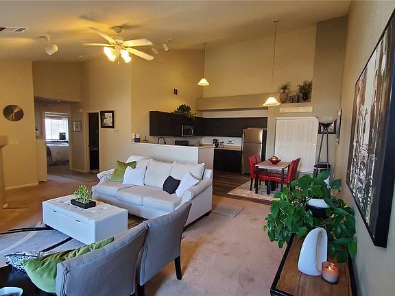 You will love this open concept, light and bright 2 bedroom condo with a 1 car attached garage. This home offers a spacious living room, with gas log fireplace, an office nook, and access to a wonderful balcony to enjoy warm summer nights. It's large convenient kitchen opens to both the dining and living room, allowing you to enjoy your guest while cooking. Both the master suite and guest bedrooms are large, bright and airy. The gas furnace and gas water heater are both just 2 years old. This has everything; playground, pool, spa, fitness center and is centrally located, less than a 1/4 mile from the new light rail station, as well as being close to dining shopping and more. Welcome Home!