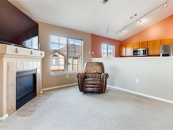 Welcome to this cozy condominium nestled in the city of Thornton. Conveniently located next to supermarkets and restaurants. Walk just around the corner and enjoy a breath of fresh air and relax at Grandview Ponds Open Space. Tucked away from the parking lot is the front door to the house. The entrance has a fine courtyard to enjoy the company of neighbors and community. As you enter the house, you'll be pleasantly surprised layout with a large great room, boasting an open concept combining the dining room, family room, and kitchen into one cozy enjoyable space. The living room door leads you to a balcony where you can catch a sunset view. The master room has a great closet, big enough to hold all the clothes you can imagine. Haven't had enough, the attached garage is below the unit for easy access. With an abundance of amenities, this HOA provides lawn care, snow removal, trash, water, community center, pool, and gym.