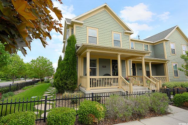 Welcome home to this 4 bedroom, 3 1/2 bath charmer. This whimsical Daybreak townhome is a rare find with completely finished basement, beautiful side yard, private fenced in paver patio and delightful front porch. It is a move in ready, well kept, former model home which includes upgraded cabinets, countertops, lighting and stainless steel appliances. Situated just steps away from the North Shore lake and future home to the 17,000 sq ft Harmon's Market, with additional space for future restaurants and retail stores. This home is a must see! You'll be glad you did! Washer, dryer, and fridge are negotiable. Garage storage racks are included. Square footage figures are provided as a courtesy estimate only. Buyer is advised to obtain an independent measurement.