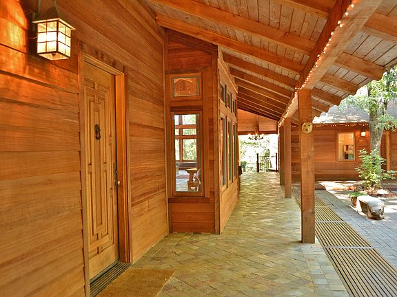 This incredible home's story begins with a majestic drive through a forest of tall pines setting the hand-picked homesite overlooking Scott's Flat Lake and the Immigrant Gap. The home wrapped in clear-heart-redwood surrounds the courtyard filled with sounds of the fountain. A covered walkway connects the main building to the ensuite bedrooms. You soon realize there is nothing average about this property. Enter the main house with its 23' high beamed ceilings grounded by the radiant heated stone and antique tiled floors, draw you to The Grand Room acoustically designed for concerts. The Gourmet Kitchen has everything, Breakfast Room has Morning Sun & Lake Views, Stately Formal Dining Room, Library & reading/music room with lots of windows & a fireplace for cozy reading. Turned oak stairway leads to an office/study & a walk-out treehouse deck. Hot tub deck & finished garage. Only 7 minutes from Nevada City. Impressive Living & Entertaining with High Quality Lifestyle,