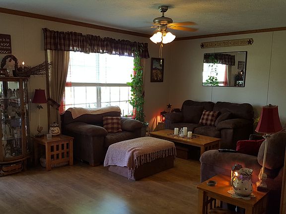 Located just outside of town, this well maintained manufactured home rests on 5+/- acres and offers 4 bedrooms, 2 full baths, an open concept living area, and nice covered rear deck!