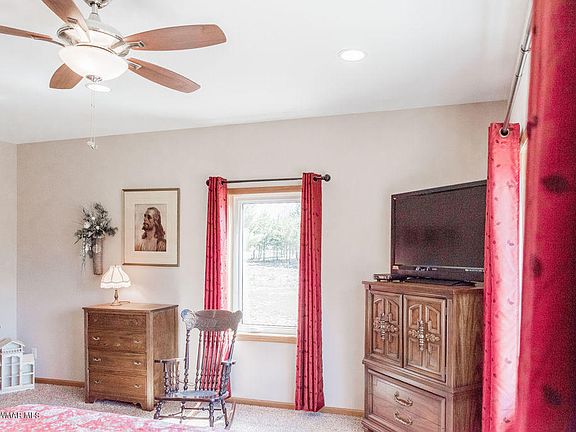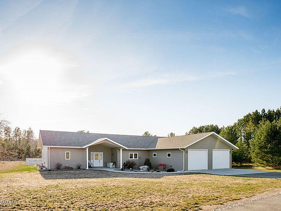Large, upgraded one level home on 2.57 beautiful acres in a great location! Home features an open floor plan with 9' ceilings, large kitchen, mud room, master suite, covered porch, great storage, natural gas heat and steel siding. Includes an over-sized finished heated double attached garage, a 12x32 shed, a fenced garden area, great landscaping, and a paved driveway.