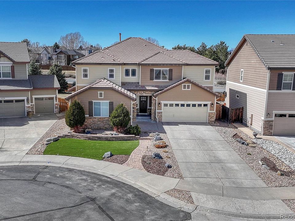 Did someone ask for more space? This 6 BR, 6 BA + office home offers over 4,500 finished square feet, perfect for multigenerational living with a finished basement, 3-car garage, and low-maintenance yard. The gourmet KITCHEN features a built-in GE Monogram fridge, 5-burner induction cooktop, double oven, SS appliances, oversized island with seating, tons of cabinetry, and a butler’s pantry leading to the large formal dining room. Open-concept FAMILY ROOM is warm and inviting with soaring ceilings, a stone-surround gas fireplace and abundant natural light. Main-floor OFFICE with French doors provides privacy for work or study. Upstairs, the PRIMARY SUITE is a private retreat with double closets, built-in coffee bar with mini fridge, and a luxurious 5-piece bath with a soaking tub and oversized vanities. Desirable 4 bedrooms upstairs floorplan offers three additional bedrooms and two more baths to complete the upper level, including a guest suite with ensuite bath and a Jack-and-Jill setup for two others. LAUNDRY/MUDROOM: Cubbies off the garage for easy organization. Washer/Dryer stay. FINISHED BASEMENT offers two spacious bedrooms connected by Jack-n-Jill bath, rec area with a tray ceiling and stone fireplace, dining space, a kitchenette with mini fridge and space for a future dishwasher, plus an addtl half bath. OUTDOOR LIVING is just as impressive, with covered patio, hot tub-ready 220V outlet, low-maintenance turf, exterior speakers, and privacy fence. HOME EXTRAS: New Trane furnace, AC, and water heater (2023), Tile Roof, 2 bay garage has epoxy flooring and single bay has been modified into a workout room. ADT Smart Features and security wiring throughout. Douglas County Schools in the Chaparral feeder. Located in a prime Parker neighborhood with low HOA dues, a park across the street, and miles of scenic trails, this home offers the perfect blend of space, comfort, and convenience with dining and shopping nearby and easy access to Parker, C-470, and I-25.