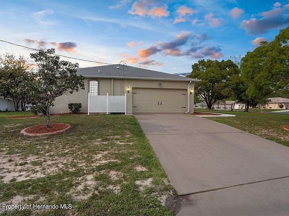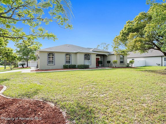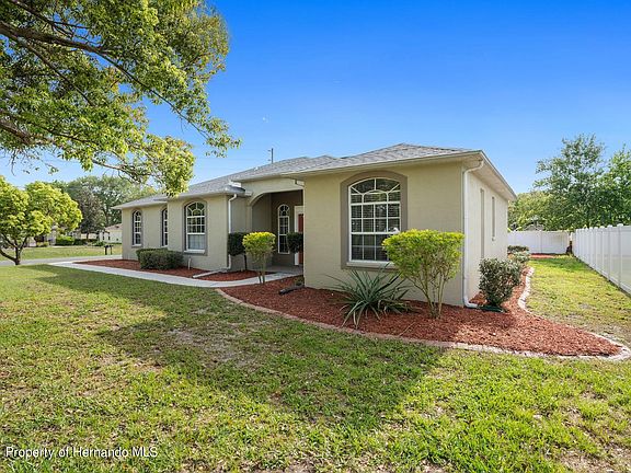 Active Under Contract - Accepting Back Up Offers. Welcome to your dream home at 10375 Musa Rd in the beautiful city of Spring Hill, FL. This stunning property is now available for sale and offers everything you could ever want in a home. With 3 bedrooms, 2 bathrooms, and 1,644 square feet of living space, this house is perfect for families of all sizes. As you pull up to the property, you will immediately notice the well-maintained landscaping and charming curb appeal. The 2-car attached garage provides ample space for parking and storage. Step inside and be greeted by an open and airy floor plan, with plenty of natural light flooding in through the large windows. The spacious living room is perfect for entertaining guests or relaxing with your loved ones. The kitchen is a chef's dream, featuring modern appliances, plenty of counter space, and a spacious island. The adjacent dining area is perfect for family dinners and gatherings. The master bedroom is a true retreat, with a large walk-in closet and an en-suite bathroom featuring a luxurious soaking tub and separate shower. The two additional bedrooms are perfect for children, guests, or a home office. Step out to the inclosed patio and envision yourself enjoying a cup of coffee overlooking the lush green lawn. This property also offers an abundance of space for outdoor activities and gatherings. Located in a desirable neighborhood, this home is close to top-rated schools, shopping, dining, and entertainment options. Don't miss your chance to make this house your forever home.