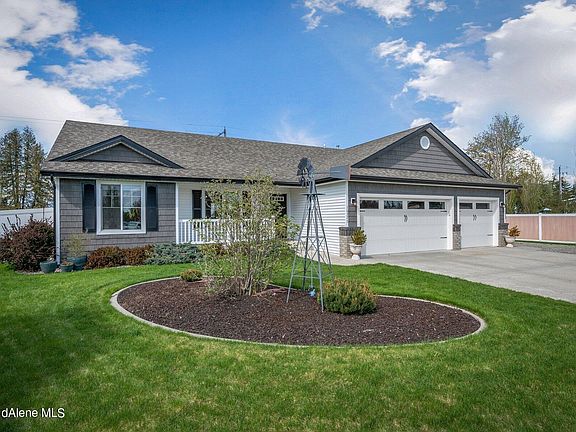 Cute as-a-button 3 bedroom, 2 bathroom single-level located in Hayden, Idaho is the perfect place to call home. This immaculate rancher has been remodeled, professionally painted inside and out, includes new trim, new carpet, and newer stainless appliances. Walk into the spacious living room with vaulted ceilings and take in the light and bright open floorplan. The sought after split bedroom design with primary on one side, 2 bedrooms on the opposite side, offers plenty of room for you and your loved ones. Spacious 3-car garage AND an open side yard for RV or trailer parking that could accommodate almost any size rig, there is no shortage of space here! Enjoy the cute front porch or back covered patio and admire the beautiful landscaping which includes sprinklers front and back. Close to everything; only 7 miles to downtown CDA, 6 miles to Kootenai Health, 4 miles to Honeysuckle Beach, and 46 minutes to the Spokane Airport. Whether you're looking for a place to relax or entertain, this gorgeous home provides the perfect setting. Make it yours today!