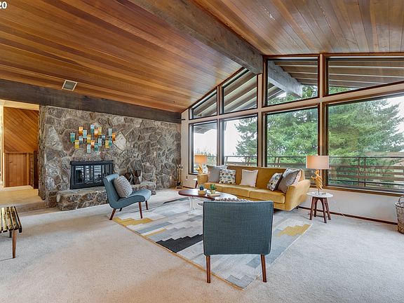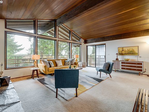 Gorgeous mid-century influenced design with NW style features throughout. Sunken living room with a soaring vaulted wood ceiling and a wall of windows with a Mt. Hood view.Entertain in the large family room with a vintage Malm fireplace and bar.Enjoy the large wrap deck with a deep overhang perfect for outdoor lounging year round. Large, private yard with established landscaping. Great location close to natural spaces, shopping,I-5. [Home Energy Score = 5. HES Report at https://rpt.greenbuildingregistry.com/hes/OR10076395]
