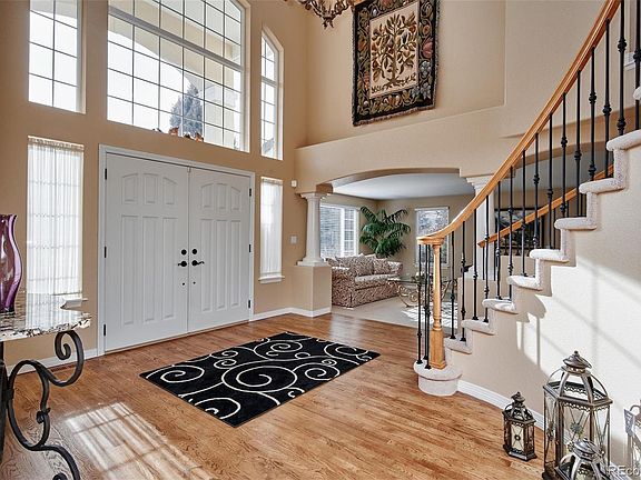 Welcome Home! This beautiful Oakwood Grand Hampton offers over 6800 square foot of finished living space & is an Entertainer's Dream!. Located on over a 1/3 of an acre, this private lot is located at the end of a cul-de-sac backing to open space & is a short walk from one of the many Highlands Ranch pocket parks. Once inside this beautiful 6 bedroom/6 bath home you will find many updates you are sure to love. The grand 2 story entry flows into the formal living & dining rooms. The remodeled gourmet kitchen features high end appliances including a built in Kitchen Aid refrigerator, Viking gas stove w/griddle, Bosch dishwasher & Kitchen Aid double oven w/ steam & convection features, new soft close cabinets w/glass accents along w/ granite countertops, large center island & corner pantry. The family room enjoys a wet bar & gas log fireplace. The main floor also includes a mother-in-law suite w/full bath, which could also be used as a private main floor study, laundry room w/ sink & cabinets & an additional bath. Upstairs you will find a large master bedroom w/ completely remodeled spa like bath featuring dual shower heads, stand alone tub, custom mirror & heated floors. There are 4 additional bedrooms each w/ shared jack and jill baths. The largest additional bedroom could be used as a second recreation room or teen suite. Enjoy the finished, full garden level basement w/ western saloon bar w/knotty alder cabinets, custom cherry bar w/ magma gold granite, pool table, sound system, dishwasher, ice maker & 2 beverage refrigerators. Don't miss the workshop, theater room, storage & addtl bonus room which could also be used as an addtl bdrm, exercise rm, craft rm or office. Outdoor entertaining has never been better on the large deck w/ speakers or games in the large, private backyard w/ mature trees. Close to schools, parks, & open space trails. Access to all 4 recreation centers. New Carpet Upstairs & in theater! 3 car garage. This home will not disappoint. Guaranteed!