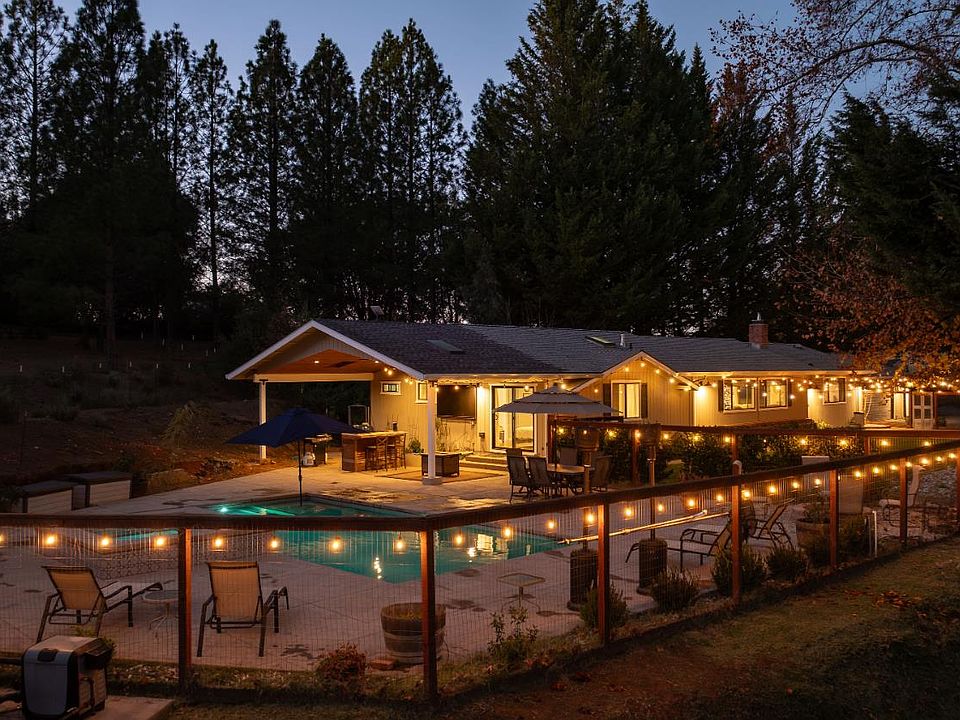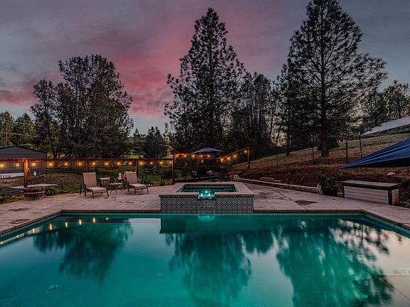 This Beautiful Remodeled Ranch Style home sits on 5.32 acres located just outside of Jackson (7 miles, approx 15 mim) There is a 1500sqft shop with a 10' roll-up door, 220 and a 30 amp RV plug. The patio and pool area speak for itself, evening spa nights consist of skies full of stars reminding you of your private space. Located one mile from Lake Tabeaud where you can horseback ride,fish, hike and Kayak, this is Amador County at its best. The property is partially fenced and cross fenced for your horses, or other large animals. Behind the home with its own separate access are FULL RV hook-ups and pad. The home has so many amenities, tankless water heater, whole house generator, custom cabinetry throughout, New flooring throughout, 40 leased solar panels to accommodate the home. The property goes far beyond the shop and behind the home.