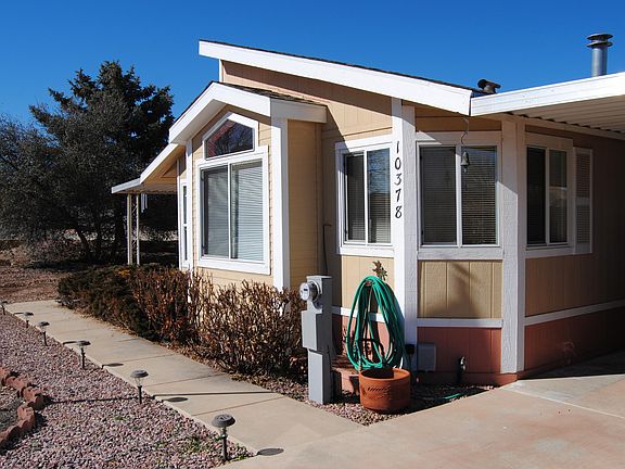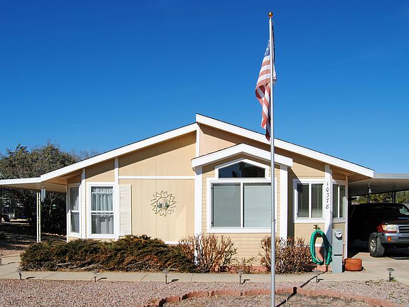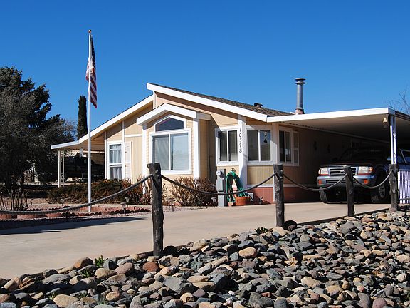 Don't miss this Elegant 2 Bd + Den, 2 Ba MF Home in the desirable Prescott Country Club. This well designed and maintained 1680 sf home has many builtins for your convenience. Enjoy your wood burning fireplace in a comfortable setting. Spacious kitchen with island, formal dining room and SS appliances. Laundry room has built-in desk, could be used for media area. This home has mostly carpet and vinyl flooring. Master bath has twin vanity, garden tub and walk in shower. Plus two walk-in closets. Excellent Trane furnace and 2yr Roof. Bathroom skylight and many ceiling fans throughout. Large covered Patio for relaxing. 9x11 outside shed, extra storage. Low maintenance landscaping, close to open space, hiking. This move in ready home is ready for you! Home Tied down, but no Cert.